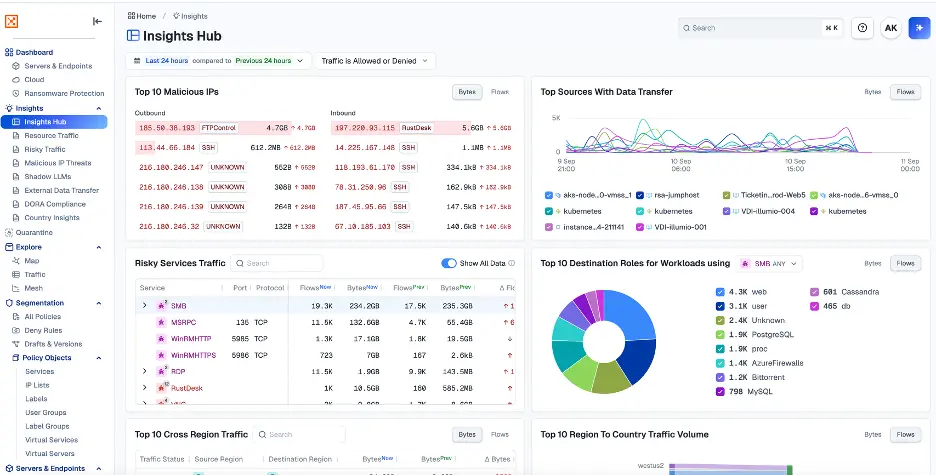 Illumio Insights takes this a step further. By giving deep visibility into workload-to-workload and workload-to-internet traffic, it helps defenders see what other tools miss.