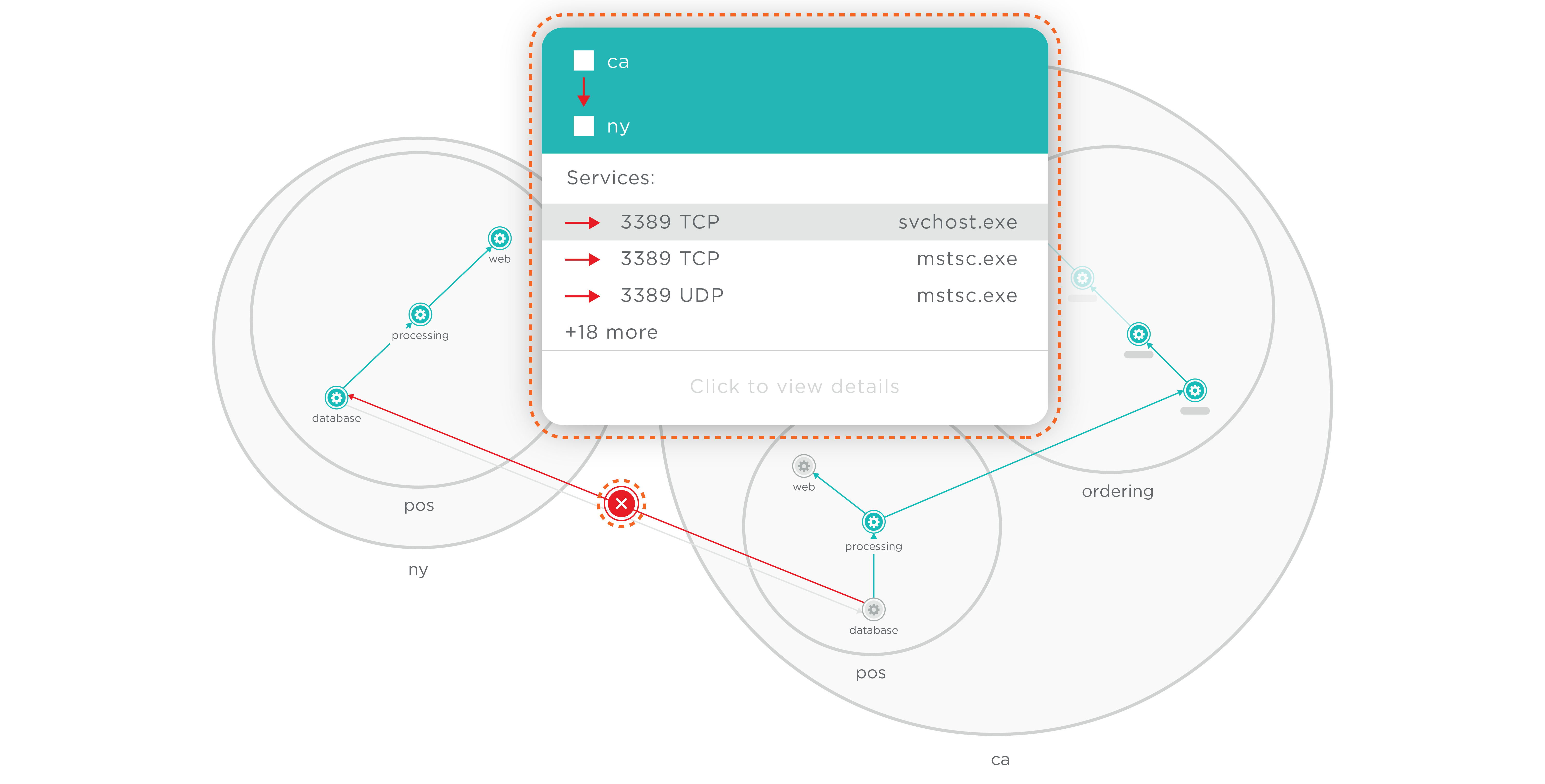 Application dependency map, traffic flow telemetry and historical records provide actionable insights for allowing or denying traffic. Reduce risk and simplify compliance.